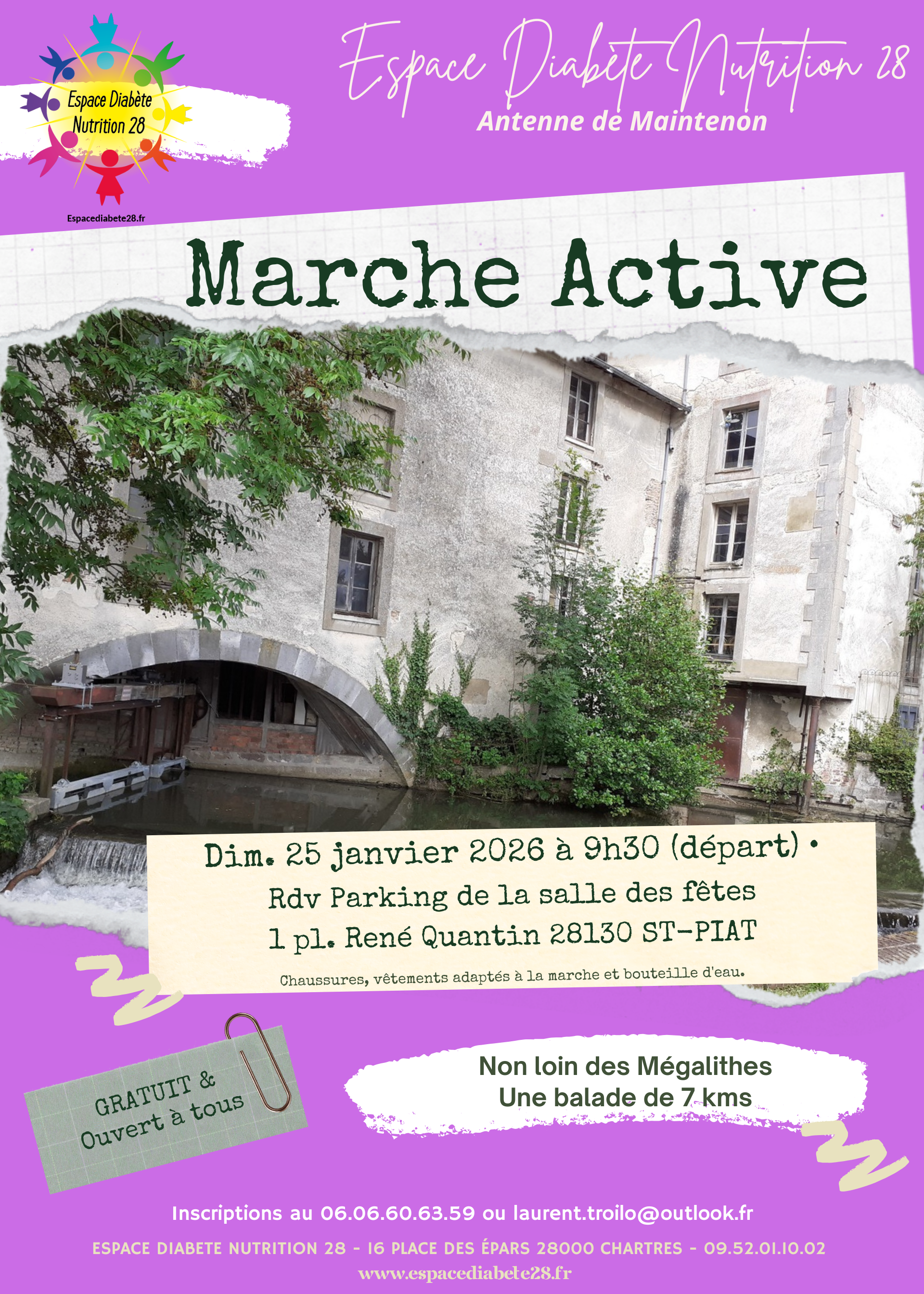 L’Espace Diabète Nutrition 28 – antenne de Maintenon vous invite à une marche active conviviale, accessible à tous.